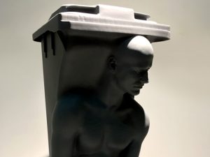 В проекте-интервенции Homo Virtualis участники Recycle Group — краснодарские художники Андрей Блохин и Георгий Кузнецов — смотрят на новую человеческую генерацию из отдаленного будущего, подобно тому, как мы рассматриваем руины Акрополя или статуи на фасадах готических храмов. Выполненные в разных техниках полиуретановые и пластиковые объекты Recycle Group разместились в залах Главного здания Пушкинского музея среди произведений постоянной экспозиции, где даже очень внимательному зрителю приходится приложить усилия, чтобы их обнаружить. Этот квест, в который художники вовлекают посетителей, — неотъемлемая часть проекта, своего рода современная археология. Что же мы обнаруживаем, отправляясь на «раскопки»? Так, в итальянском дворике, в окружении слепков кондотьеров Донателло и Вероккио и микеланджеловского Давида, возвышается «Селфи-башня» — двухъярусная человеческая пирамида наподобие тех, что были популярны в 20-30-е годы в СССР, только вместо тренированных атлетичных тел — сетчатые люди-призраки с селфи-палками.