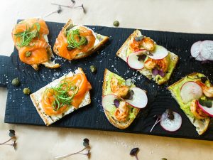 Долгие майские праздники — возможность праздно прогуляться по переулкам Патриарших прудов, рассматривая витрины бутиков и замысловато одетых прохожих. А почувствовав первый гул в ногах (в которых, как известно, правды нет), заглянуть в ресторан «Рыбторг», где как раз подготовили несколько новых позиций в меню. В числе новинок — две аппетитные брускетты: с муссом авокадо и лангустинами под карамелью (590 руб.), которая непременно понравится любителям контрастных сочетаний, и с сырным соусом, соленым лососем и каперсами (390 руб.) — для ценителей классики.