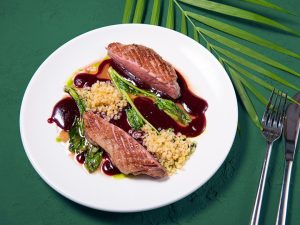- Филе оленя в соусе из зеленого перца с красной капустой