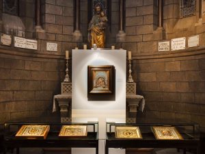 Дизайнер и куратор графиня Наталья Валевская представляет выставку икон, вышитых драгоценными камнями. Выставка продлится до 3 апреля в Соборе Непорочного Зачатия Богоматери в Монако.