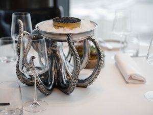 Если вы идете в ресторан компанией, выбирайте в аквариуме самого красивого краба и заказывайте крабовый сет. Все блюда, входящие в сет (закуски, салат и основное), будут приготовлены из выбранного вами красавца. На десерт к такому сету подадут фирменную «Черную жемчужину».