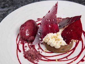 В Ladurée à-la Russe шеф-кондитер Марина Сухомлинова готовит рождественское полено «Фаворитка», наполненное вкусом фисташек, а в кафе-гостиной «Гретель» подают меренгу «Павлова», декорированную нежно-голубым и серебром. «Черная смородина, свекла, красное вино» в Drinks@Dinners — это смелый эксперимент: не каждый кондитер найдет в своем меню место свекле!