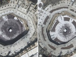 Компания Maxar Technologies Inc. со штаб-квартирой в Вестминстере, штат Колорадо, США, которая специализируется на производстве спутниковых продуктов и сопутствующих услуг, недавно показала аэрофотоснимки часто посещаемых или густонаселенных мест по всему миру — до и после эпидемии коронавируса. Обычно оживленные и заполненные улицы, дороги, площади перед достопримечательностями на фотографиях, сделанных в период распространения новой инфекции, выглядят опустевшими и покинутыми. Среди прочих на снимках — почти пустое пространство вокруг Каабы в Мекке, обезлюдевшая площадь Тяньаньмэнь, главный проспект в Ухане почти без машин, аэропорт Тегерана, где количество самолетов явно уменьшилось, токийский Диснейленд без очередей и привычных толп и другие места планеты. Такой контраст свидетельствует об очень сильном влиянии коронавируса на жизнь людей во всем мире, однако также это говорит об отличной осведомленности и соблюдении мер предосторожности властями и населением разных стран.
