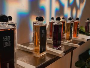 Также гостей ждала мистическая аудиоэкскурсия, погружающая в мир ароматов Serge Lutens. Сначала — суета никогда не спящего Нью-Йорка и знакомство с коллекцией ароматов Gratte-Ciel. Затем (под музыку Эрика Сати) — центр Парижа и Пале-Рояль, где на колоннах в черно-белую полоску были расставлены флаконы-колокольчики из эксклюзивной коллекции Bell. И в финале — Марракеш, где Лютанс создал свой самый известный аромат Féminité du Bois: тут гостей угощали сладостями из тончайшего теста с медом и орехами, поданными с традиционным марокканским чаем, и знакомили с коллекцией ароматов Collection Noir. Главной новинкой вечера стал терпкий La Dompteuse encagee с солирующей нотой лепестков плюмерии.