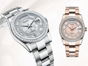 На выставке Baselworld-2013 «Ролекс» представили серию из семи вариаций модели Oyster Perpetual Day-Date из золота, украшенных бриллиантами, перламутром и цветными драгоценными камнями. Две модели с циферблатами «перламутровая карусель» представляет собой ажурную часовую дорожку из 18-каратного белого золота, инкрустированную 217 бриллиантами, с изящной мозаикой из розового или белого перламутра и с выгравированным цветочным мотивом. Циферблат «Оксфорд», в основе которого лежит структура знаменитых английских тканей, предлагает плетеный мотив, выгравированный на белом перламутре или на перламутре с отблеском платины. Эксперименты с драгоценными камнями представят нам лазурит на моделях из 18-каратного белого золота, бычий глаз на моделях из 18-каратного желтого золота и феррит на моделях из 18-каратного золота Everose с безелями, инкрустированными бриллиантами.