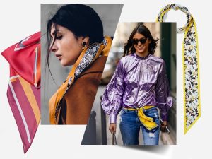 Собрали несколько идей, которые помогут вам найти актуальное применение ярким фулярам, шарфам-лентам и платкам.