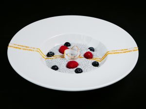 - Суфле из кокосового молока с семенами чиа, ягодами и кокосовой стружкой