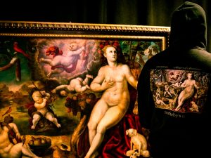 Лимитированная коллекция одежды приурочена к Sotheby’s Masters Week — серии аукционов картин классических живописцев, которая пройдет с 24 по 31 января. Футболки, худи, свитшоты с работами старых мастеров можно будет приобрести в интернет-магазине Highsnobiety, а также на сайте лондонского универмага Selfridges. Принты произведений итальянских, нидерландских и фламандских художников сделают высокое искусство ближе народу и буквально выведут его на улицы города, вдохнут в него жизнь. Партнером Sotheby’s в этом проекте Highsnobiety стал совсем не случайно, в сфере его интересов — стрит-арт и скейтерская культура, так что лучшего «проводника» для старинных шедевров в современную реальность найти было сложно.