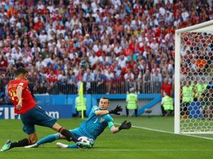Сборная России вышла в четвертьфинал чемпионата мира по футболу, обыграв сборную Испании в серии послематчевых пенальти. Последний удар Игорь Акинфеев отбил в полете ногой!
