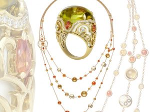 Уникальную атмосферу русской весны ювелиры воссоздают с помощью умелого сочетания белого, желтого, розового и черненого золота, белых и цветных бриллиантов, эмали и крупных камней.