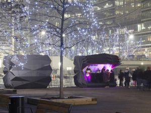Киоски уже прошли испытания реальностью: два таких «домика-веера» работали в качестве пунктов информации на Canary Wharf во время фестиваля ледяных скульптур. Но сами дизайнеры видят в своем творении идеальную «стойку» для диджея на модной вечеринке!
