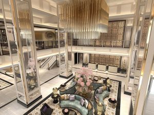 Отдельного внимания заслуживают два гигантских тематических люкса. Расположенный на 33 этаже номер «Махараджа» вдохновлен великими дворцами Раджастана, нашедшими актуальное отражение в интерьере. Люкс даже имеет собственную террасу на крыше, с которой открывается волшебный вид на Дубай. «Президентский» люкс расположен на два этажа выше и занимает целых 680 квадратных метров: оформленный в дворцовой стилистике, он включает отдельное помещение для фитнеса и комнату для занятий йогой. Оба люкса имеют панорамное остекление, так что ощущение полета над городом гарантировано.
