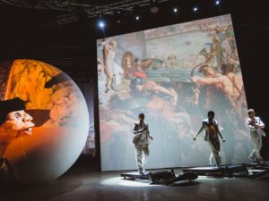 Этот импровизированный «вояж» сопровождался мультимедийными перфомансами: молодые актеры МХТ им. Чехова зачитали цитаты из книг-триуфаторов, Вениамин Смехов предстал в образе Питера Гринуэя, певица Тина Георгиевская исполнила песню «Кумушки» из фильма Андрея Тарковского «Ностальгия», а известный виолончелист Борис Адрианов сыграл несколько произведений на фоне интерьеров Музея Фаберже.