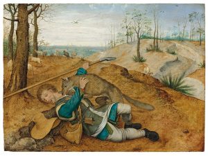 Питер Брейгель Младший, прозванный Адским, профессиональное художественное образование получил под руководством своей бабки, миниатюристки Марии Верхюлст, так как его великий отец умер, когда ребенку было всего 5 лет. Впрочем, общение отца с сыном происходило на другом уровне: художник многократно копировал работы своего гениального отца, привнося в их интерпретацию много нового и индивидуального.