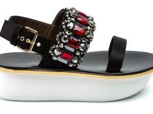 В новых сандалиях на толстой плоской подошве, украшенных искусственными камнями, дизайнеры Marni предлагают нам совместить сразу два тренда в одном.
