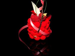 Чемпион мира среди кондитеров-2008, Дамьен не боится смешивать стили и показаться чересчур слащавым. Его элегантный шедевр «Je t`aime» («Я тебе люблю») создан на основе бисквита с малиновым желе, безе, панакоты, малинового пунша, фруктового пюре и ванильного мусса.