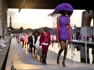 Исторический облик пространства — Арсенала, символизирующего доиндустриальную эпоху, не стали как-то менять в угоду драматургии fashion-показа, лишь добавили функциональные детали. Так как на этот раз Пьерпаоло Пиччоли вдохновлялся творчеством 17 художников, чтобы продемонстрировать связь моды и искусства, коллекция получилась эклектичной, но с неизменной верностью ДНК бренда.