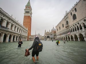 Несмотря на то, что наводнения в Венеции случаются регулярно (статья, посвященная данной проблеме, даже есть на «Википедии»), подобного потопа город не видел с 1966 года. Тогда вода поднялась почти на два метра. В этот раз ситуация чуть менее катастрофическая, однако в Венеции все равно объявлен красный уровень опасности, а полиция сообщает как минимум о семи погибших. 30 октября был зафиксирован подъем воды на 1,56 метра, в то время как критической считается отметка в 1,3 метра. Несмотря на стихийное бедствие и временное закрытие площади Святого Марка, а также ряда других достопримечательностей, город продолжает принимать гостей: туристы сменили кроссовки на резиновые сапоги и бахилы, а стильные пальто — на практичные дождевики. Пару дней назад, пока вода была по щиколотку, в Венеции даже успел пройти ежегодный марафон. Эксперты называют несколько причин, способных привести к столь сильному затоплению, в том числе — изменения климата и глобальное потепление. Среди других факторов — наслоение ила в Венецианской лагуне и подрыв системы островов из-за добычы метана на территориях вблизи города.