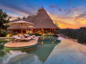 Всего в нескольких минутах на машине от центра города находится Viceroy Bali — идеальный отель, чтобы погрузиться в атмосферу Убуда. Дорога к нему проходит через рисовые поля и старинные постройки. Отель расположен на крутом склоне горы с видом на ущелье реки Петану, что дает каждой вилле и сьюту фантастический вид. Ранним утром туман поднимается из глубин густых джунглей, создавая мистическую обстановку.