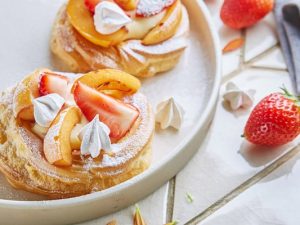 - сладкую пиццу со сливочным соусом, клубникой и фисташками;
