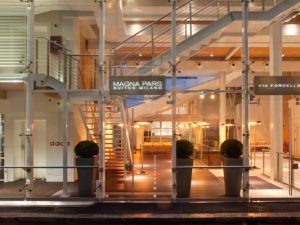 Первый в мире отель à parfum — это 28 номеров сьют каждый со своим ароматом. Номера названы соответственно «источаемым ароматам»: Gardenia, Jasmine, Neroli, Magnolia, Vetiver, Sandalwood, Patchouli… Magna Pars Suites Milano расположен в районе Навильи. Автор идеи пятизвездочного отеля — Роберто Мартоне, предприниматель в сфере парфюмерии, работающий с модой всю свою жизнь. Martone производит и распространяет парфюмерные изделия для собственной марки либо по лицензии для других брендов среди которых Trussardi, Blumarine, Dsquared2 и Pomellato. Новое увлечение бренда — оригинальный отель — построен из дерева, стали и хрусталя и охватывает четыре этажа, на которых разместились 28 номеров-сьют, ресторан с шеф-поваром Фульвио Сиккарди, лаунж-бар, бассейн и wellness area.