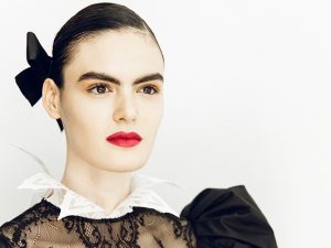 Игра контрастов продолжается в лаконичной палитре, включающей только три цвета — черный, белый и алый, а также работе с объемами. Среди безусловных фаворитов коллекции — узкий костюм в пол, украшенный вышивками и перьями, выступающий в паре с латексным топом с высоким горлом, кожаный комбинезон с рукавами-буффами и пышным бантом на талии, алый летящий шлейф, надетый со сверкающими шортами и расшитыми кристаллами чулками, а также романтическое белое макси с кружевными вставками и обнаженными плечами.
