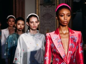 Дворцовая роскошь этой части музея послужила декорациями к показу коллекции, вдохновением для которой стали образы легендарных красавиц шестидесятых — сестер Жаклин Кеннеди и Ли Радзивилл, Катрин Денев и Одри Хепберн, Шер и Джейн Фонды, Джин Шримптон и Твигги.