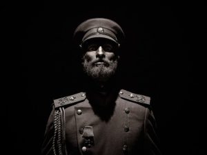 Вдруг из глубины раздается мощный хор, в котором различимы слова «царствуй», «царь православный». «Где вам удобно, я вас слышу, где неудобно — вас нет», — придирчиво замечает композитор, он же хормейстер, Александр Карпов, выслушав номер. Артисты принимаются заново, на этот раз артикулируя гораздо отчетливее.