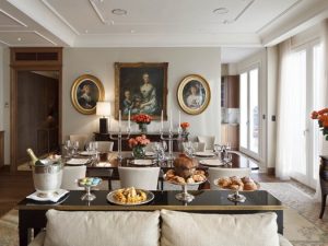 Столовая обставлена мебелью из дуба, сделанной на заказ, и располагает собственной кухней, оснащенной по последнему слову техники. Конечно, чаще всего гости подобного сьюта не готовят сами, а пользуются услугами шефа, однако вдруг вам захочется лично приготовить что-то особенное, чтобы удивить друзей или порадовать близких?